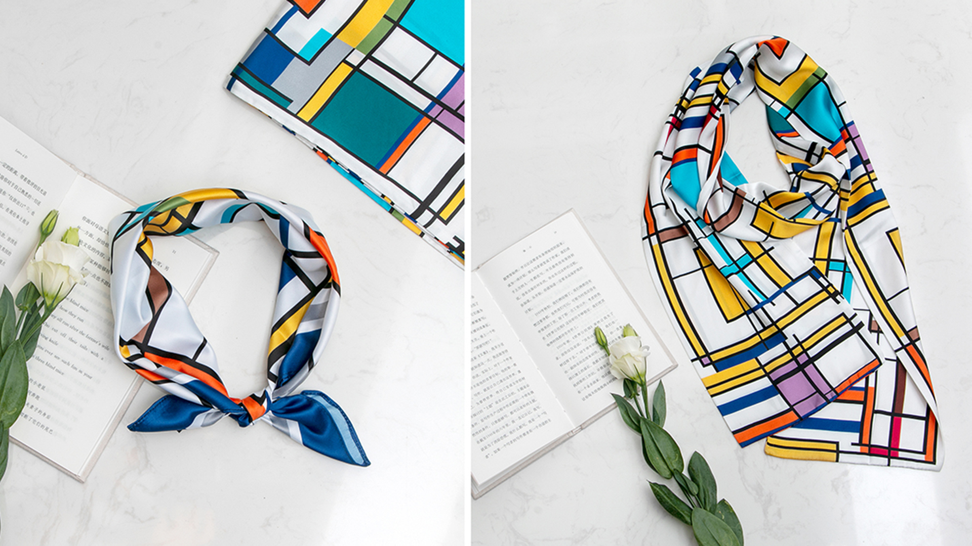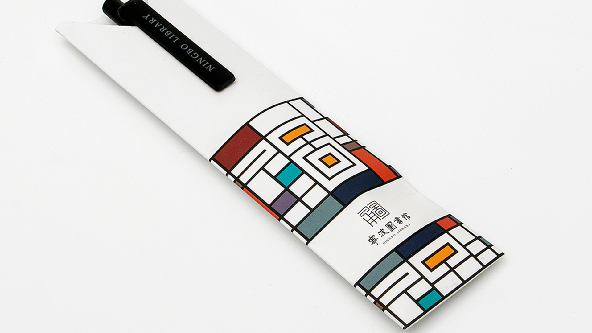 形式一:標(biāo)識整體分為兩部分,一部分是"甬圖"二字使用了"篆法"的變形,另一部分是"寧波圖書館"書法字體,設(shè)計師用現(xiàn)代手法最大程度的還原了任繼愈先生的字體原貌,使之更加平衡穩(wěn)重,可視為一種歷史文化記憶。將新館建筑中提取的線面元素與蒙德里安風(fēng)格結(jié)合,產(chǎn)生了最初版的應(yīng)用圖形。但是純粹的蒙德里安元素,在圖書館文創(chuàng)的應(yīng)用上總顯得有些許單薄,多次的更改與嘗試中,圖書館logo的出現(xiàn)讓設(shè)計師的眼睛亮了起來,同樣的塊面化元素,為什么不做一個結(jié)合呢?