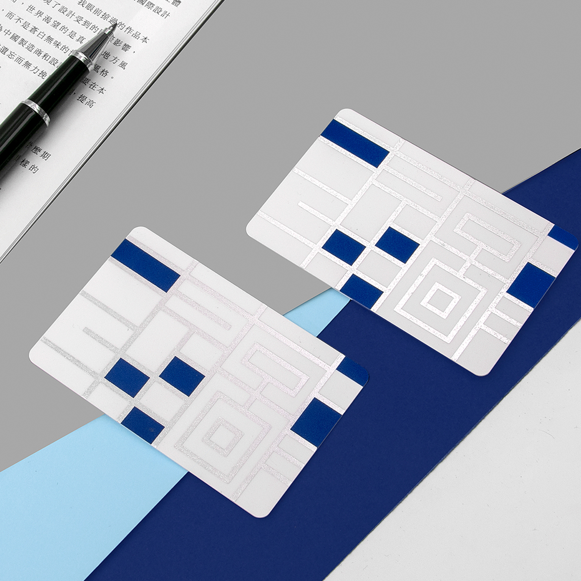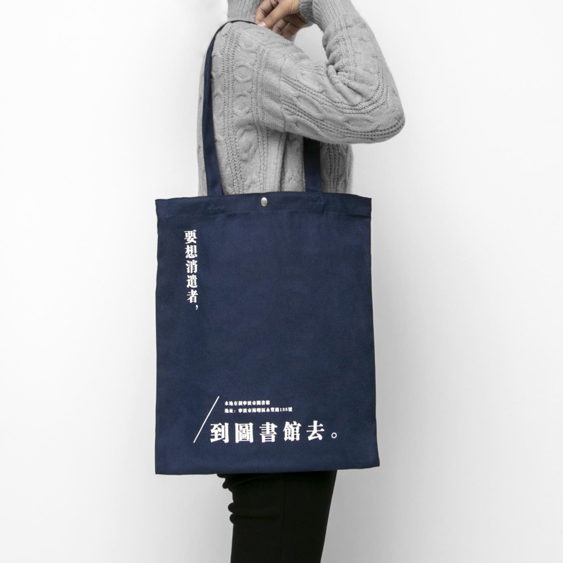 ②深深淺淺的藍色系塊面大膽拼貼,整體簡潔而富有童趣,營造出圖書館海納百川包容萬象的一面,無論你是什么人,走進圖書館,都是一個讀者?!靶吗^”系列圖形元素一確定,接下來與之前“甬圖”系列一樣,就是產(chǎn)品的元素應(yīng)用了。