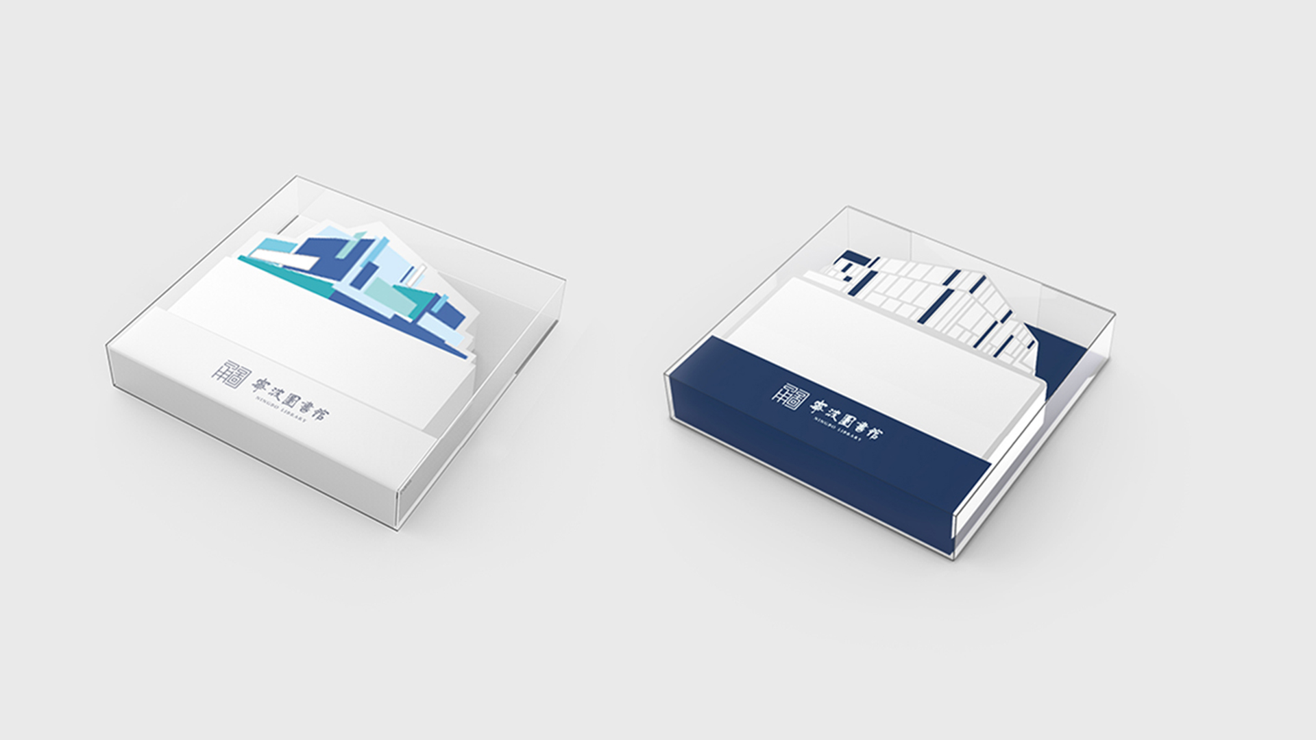 寧波市圖書館形象標(biāo)識以藍、灰為主色調(diào),整體風(fēng)格融合傳統(tǒng)意蘊和現(xiàn)代化風(fēng)格。此次寧波圖書館禮盒包裝設(shè)計根據(jù)圖書館形象標(biāo)識為設(shè)計元素,展示了更加活潑,現(xiàn)代化的視覺效果。