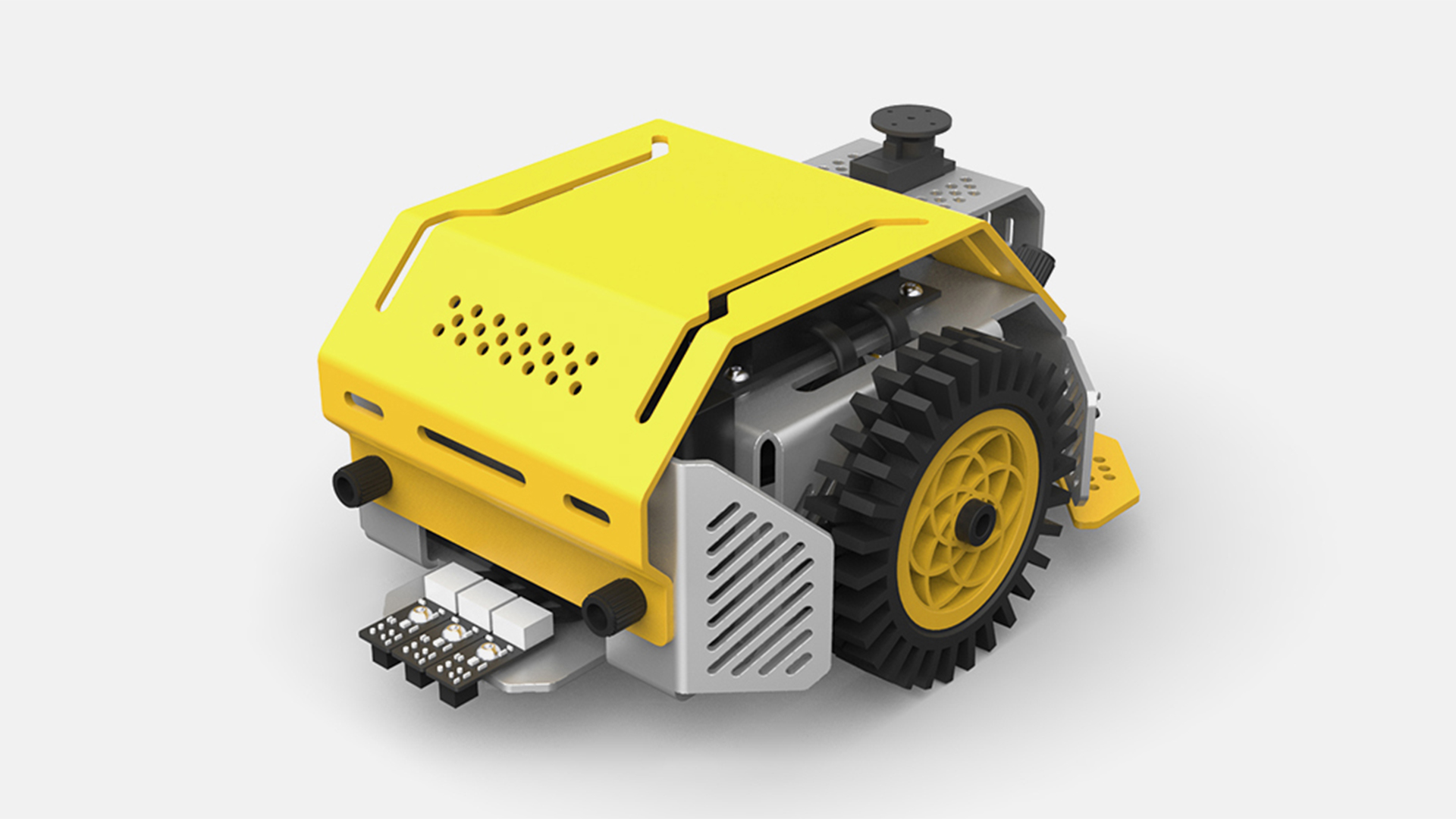 DFrobot教育小車機(jī)器之一款針對學(xué)校大批量需求的機(jī)器人。旨在簡單快速引導(dǎo)學(xué)生入門智能編程學(xué)習(xí)。機(jī)身零件以高強(qiáng)度鈑金工藝制成,結(jié)構(gòu)簡單,組裝方便,頂部大塊面的裝甲在保護(hù)車體的同時,也是一個能讓學(xué)生DIY改裝的平臺。更大限度的挖掘?qū)W生的想象力。