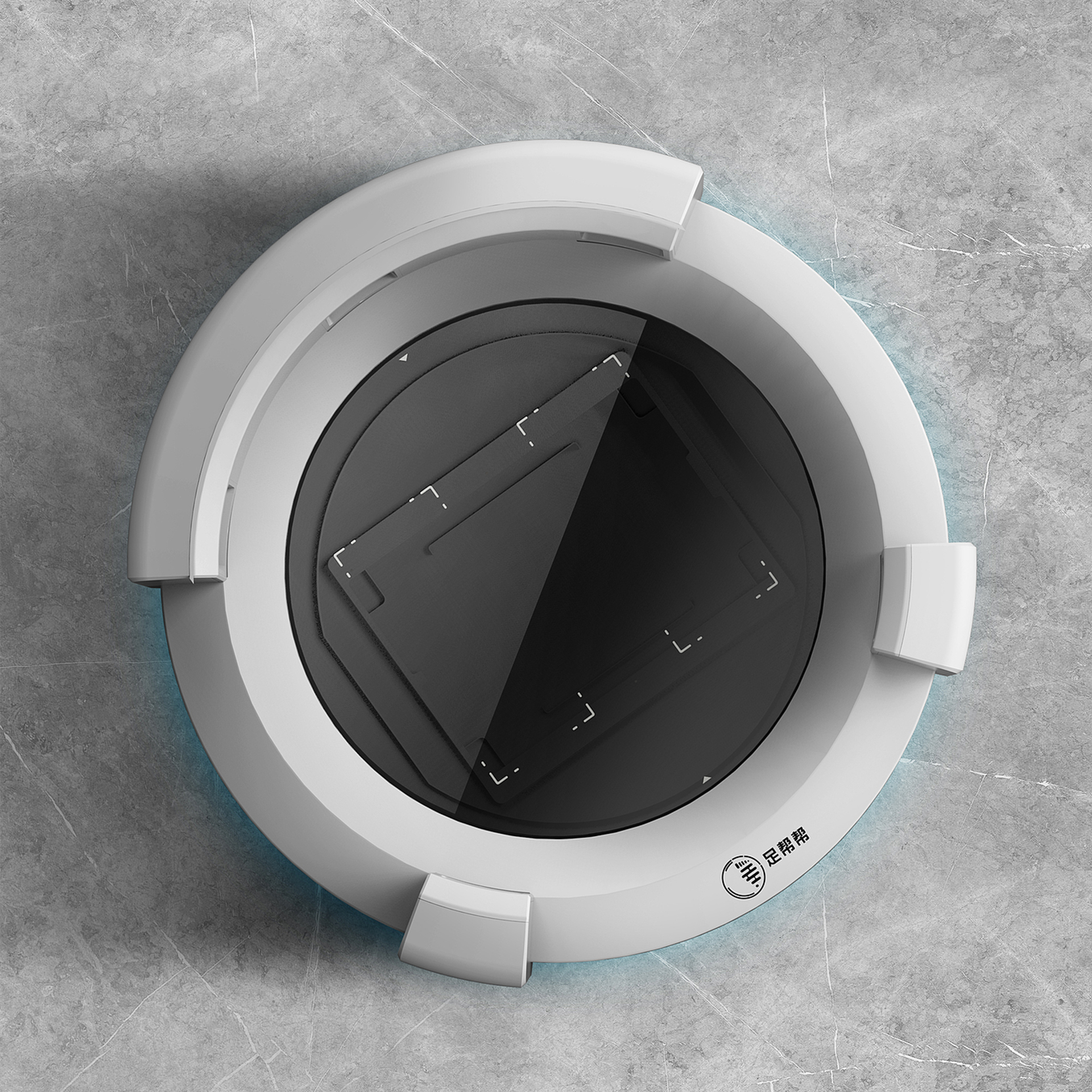 在外觀設(shè)計(jì)中,最難的環(huán)書就是如何讓產(chǎn)品看起來(lái)比較小巧。由于硬件設(shè)備的關(guān)系,足掃產(chǎn)品的硬件部分都非常的厚重,甚至有點(diǎn)脾腫。設(shè)計(jì)通過(guò)不斷的努力,運(yùn)用上下分色分割的方法,把產(chǎn)品整體切成了下兩個(gè)部分,并用一條優(yōu)美的曲線做了視覺(jué)上的改變,這樣反而讓人有種輕薄的錯(cuò)覺(jué)。